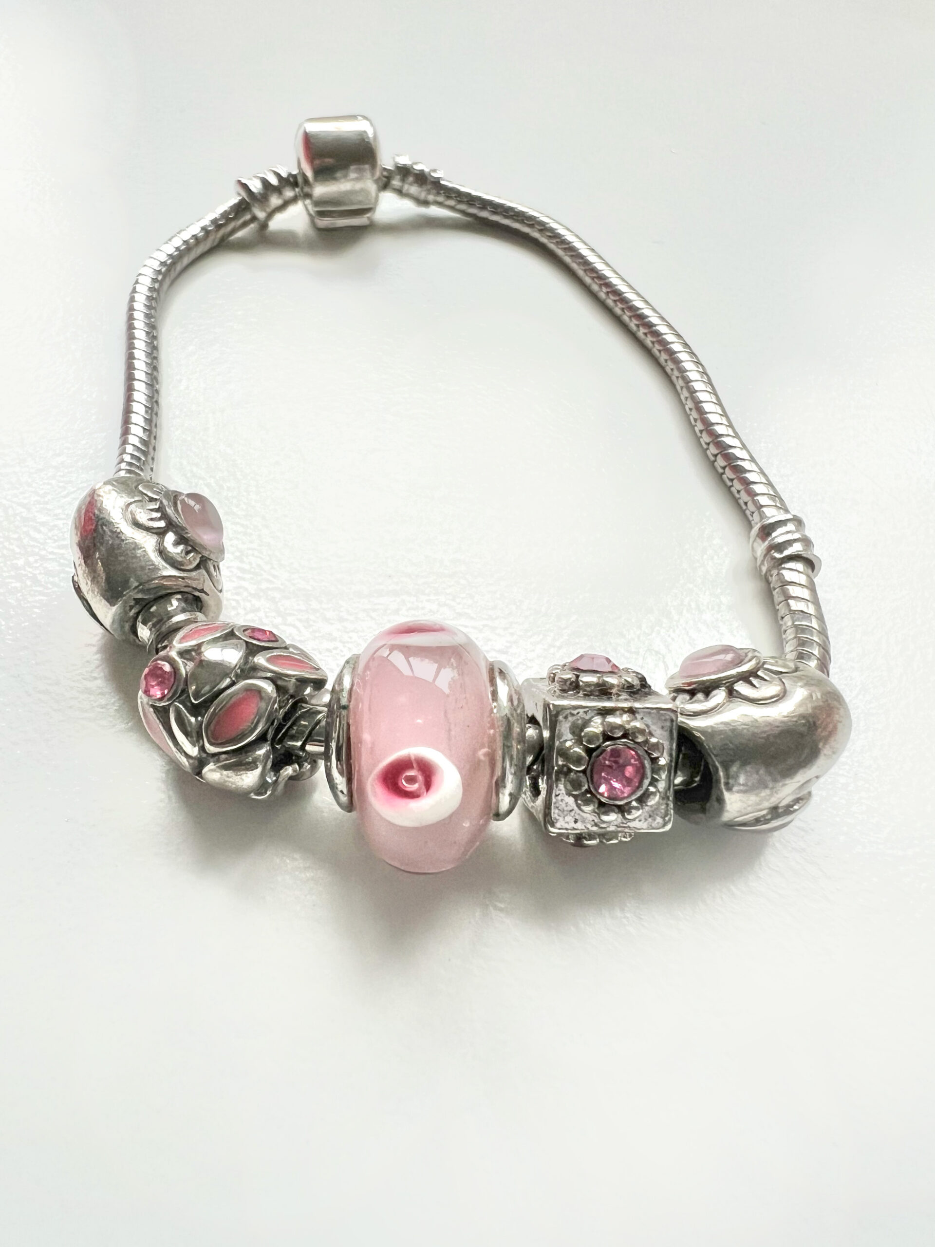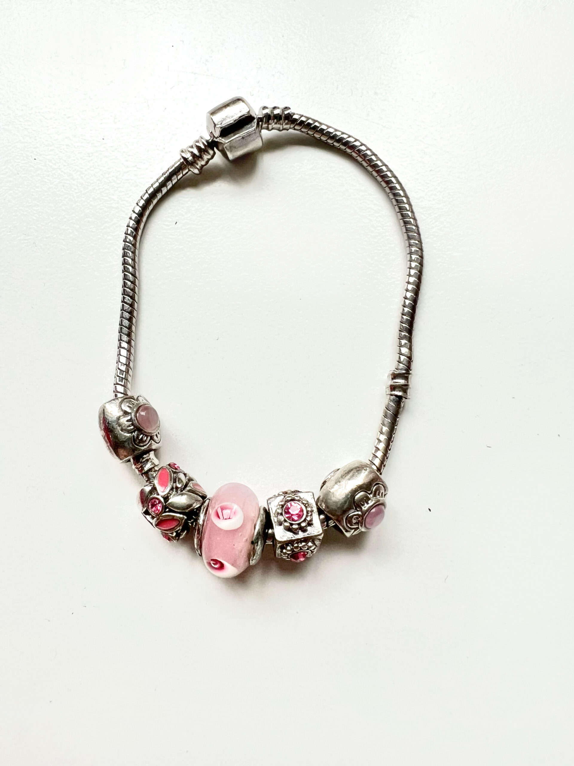 ML1890 Bracelet – Charm Bracelet. Silver Tone. Pretty In Pink