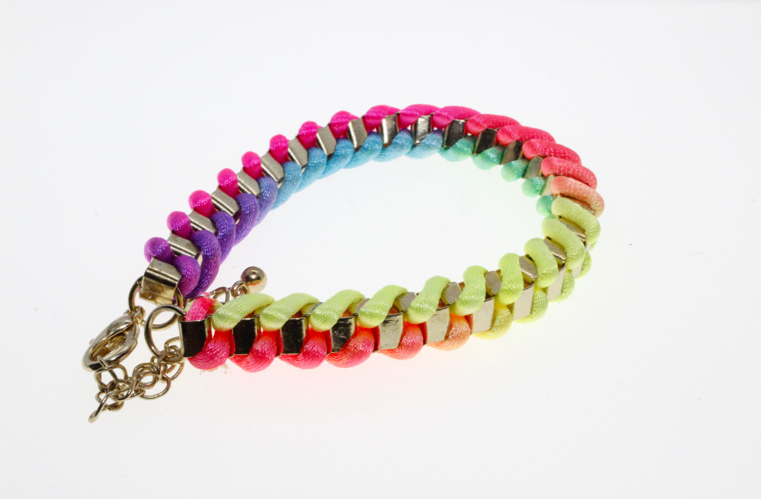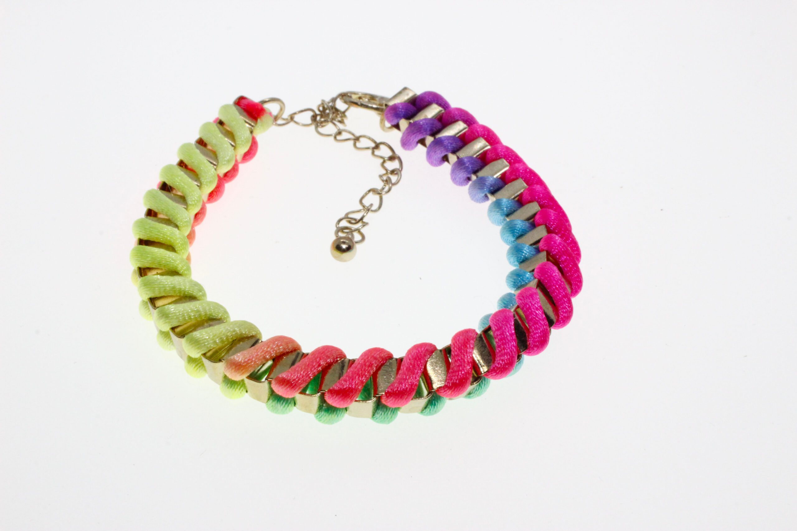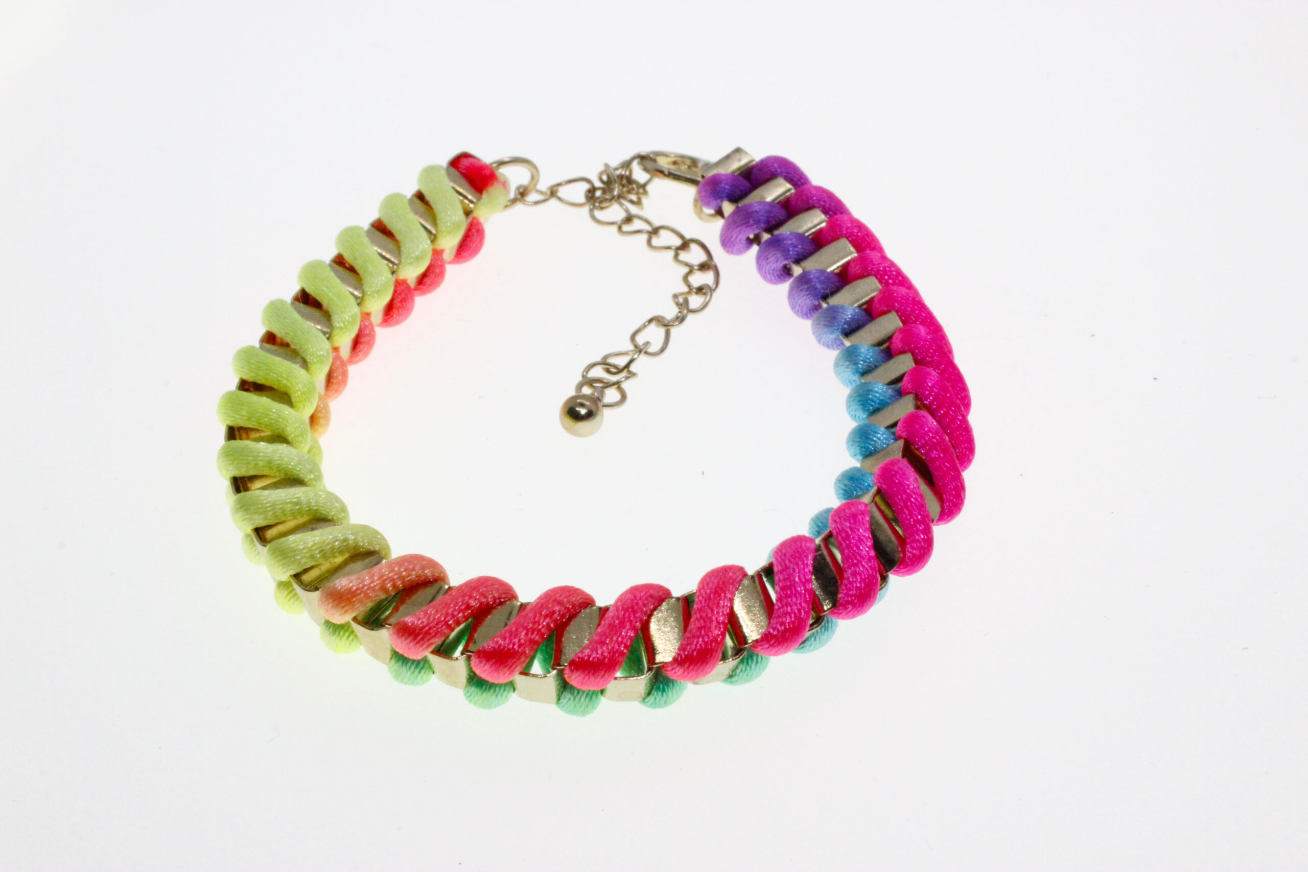 Bracelet – Fashion Gold Tone Weave Style Bracelet with Multicolour Textile String – ML2608