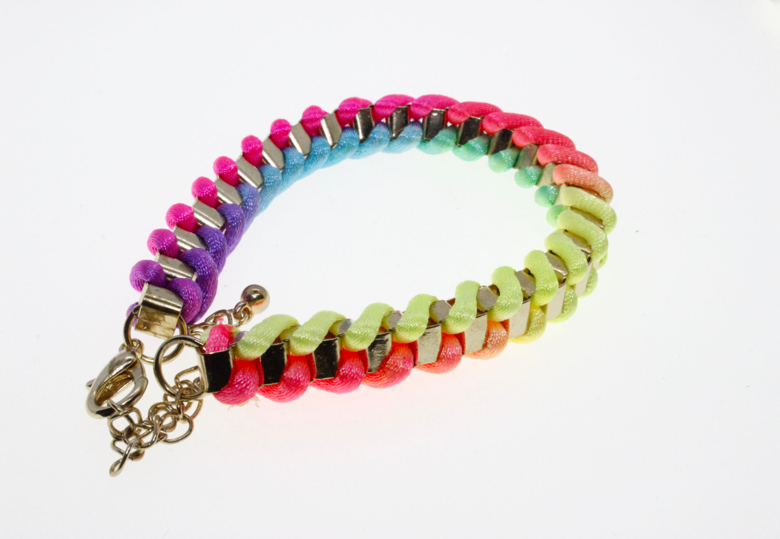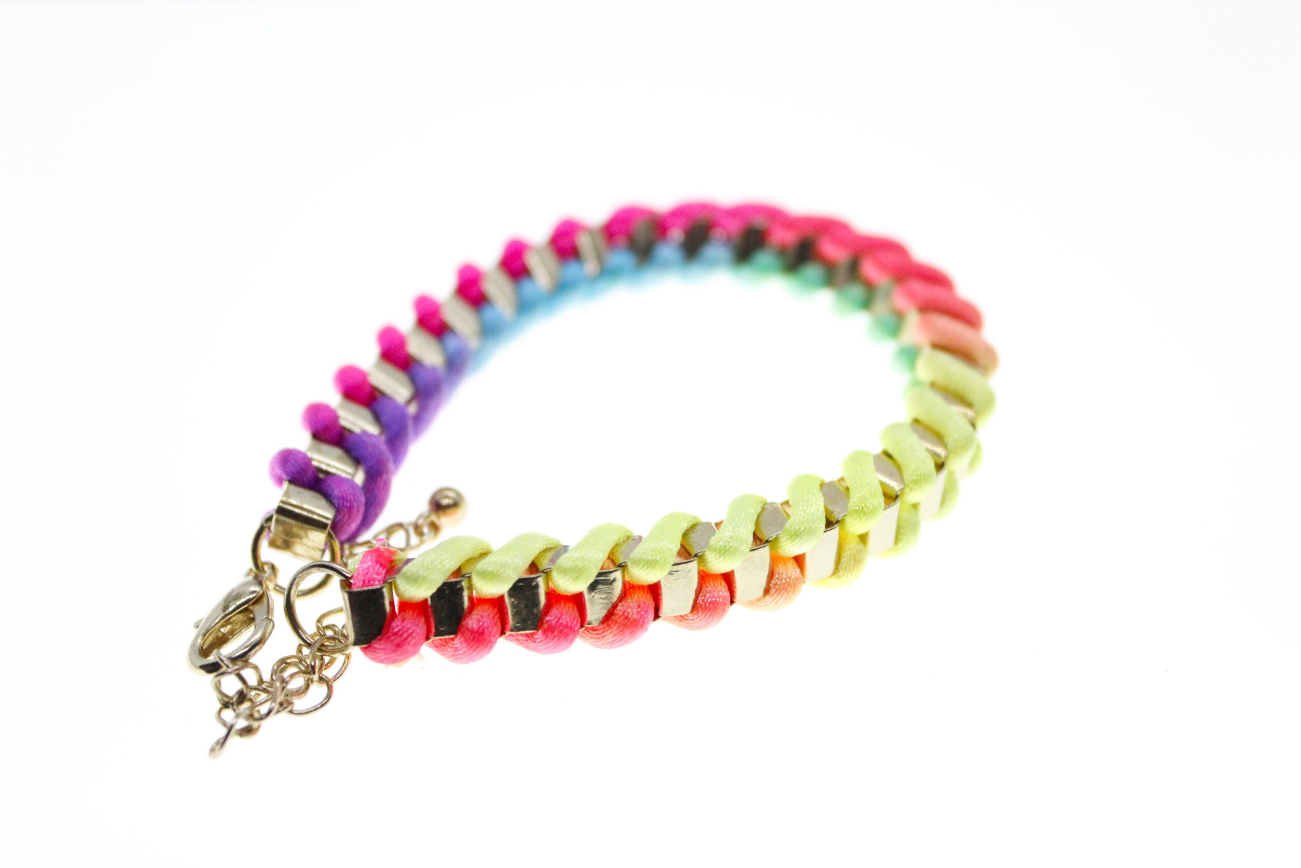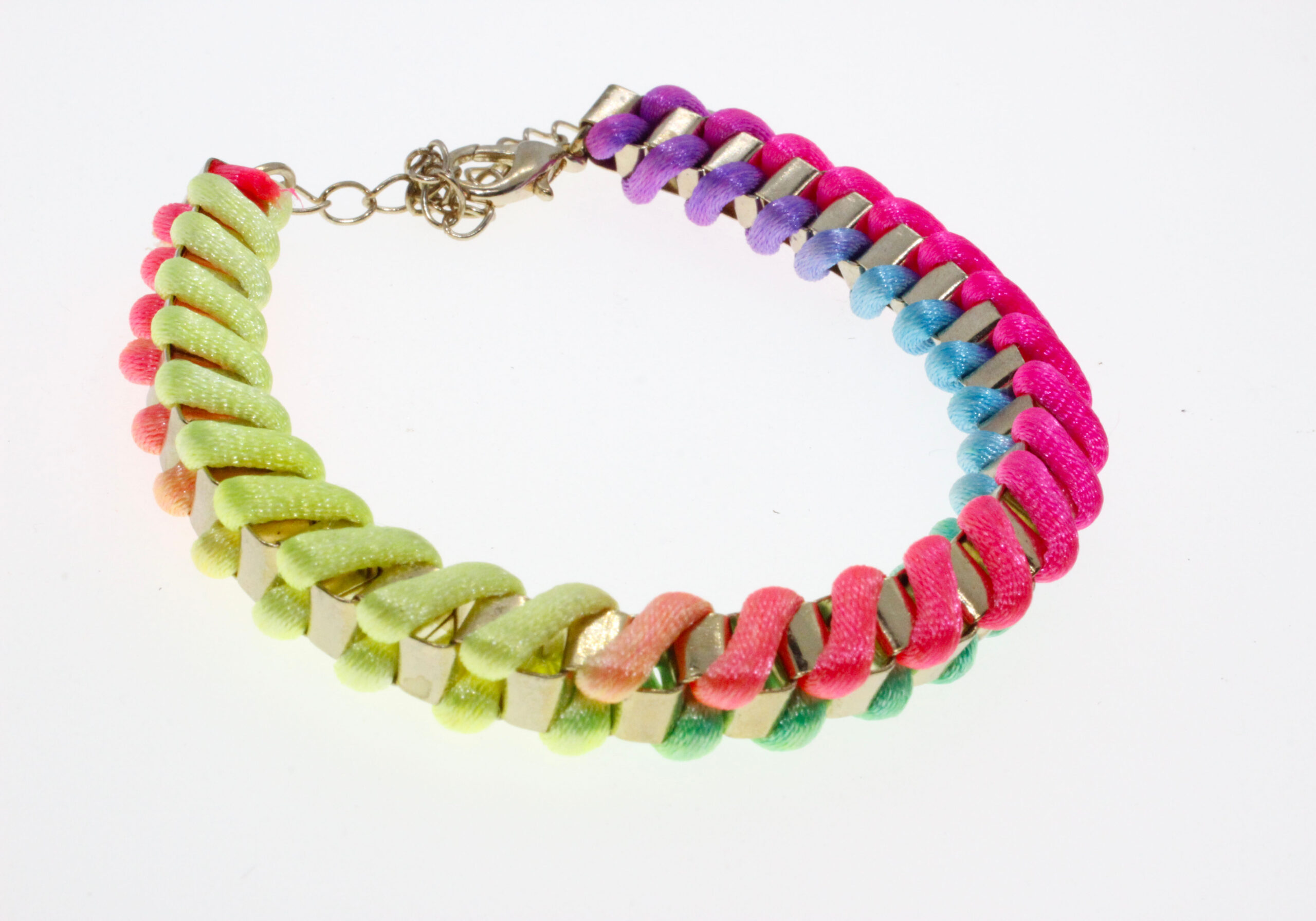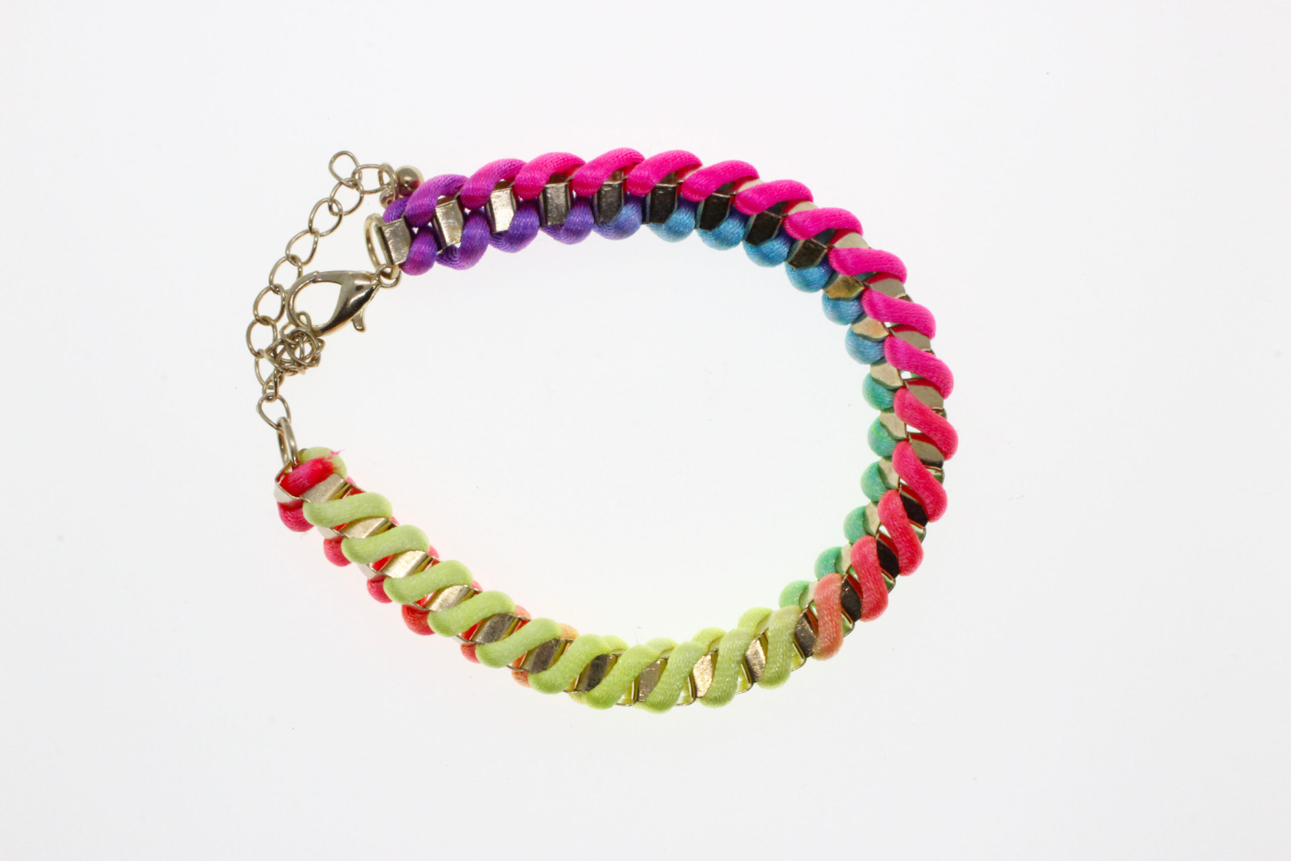 Bracelet – Fashion Gold Tone Weave Style Bracelet with Multicolour Textile String – ML2608