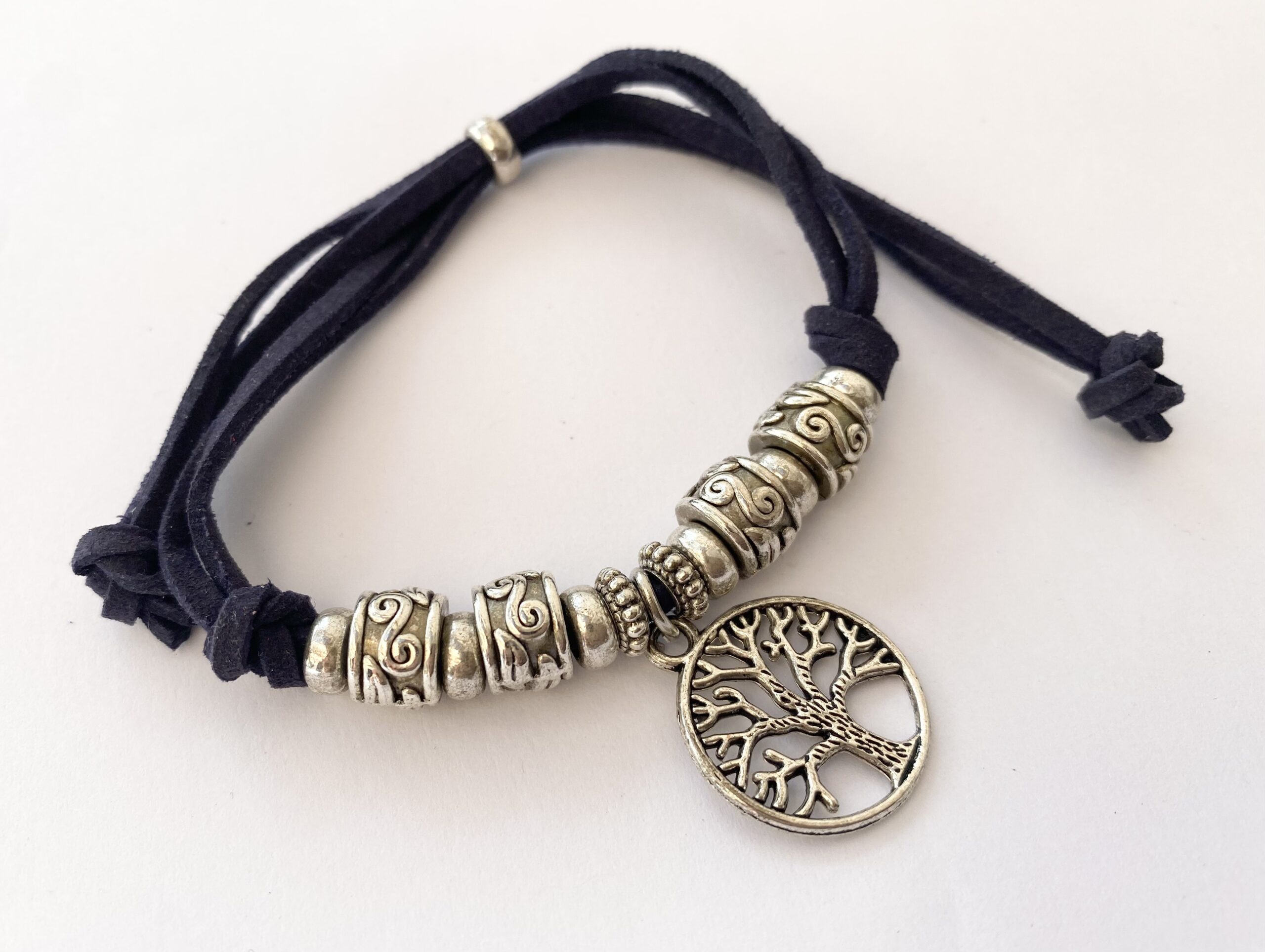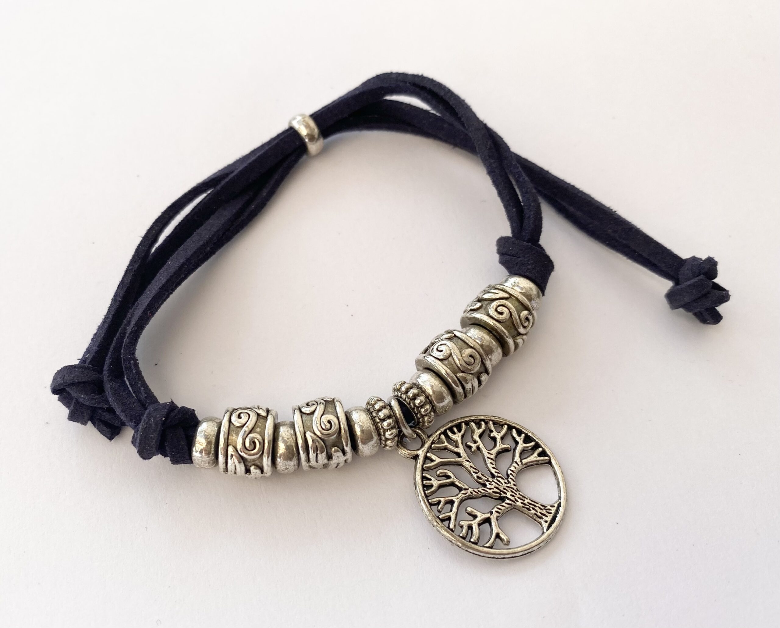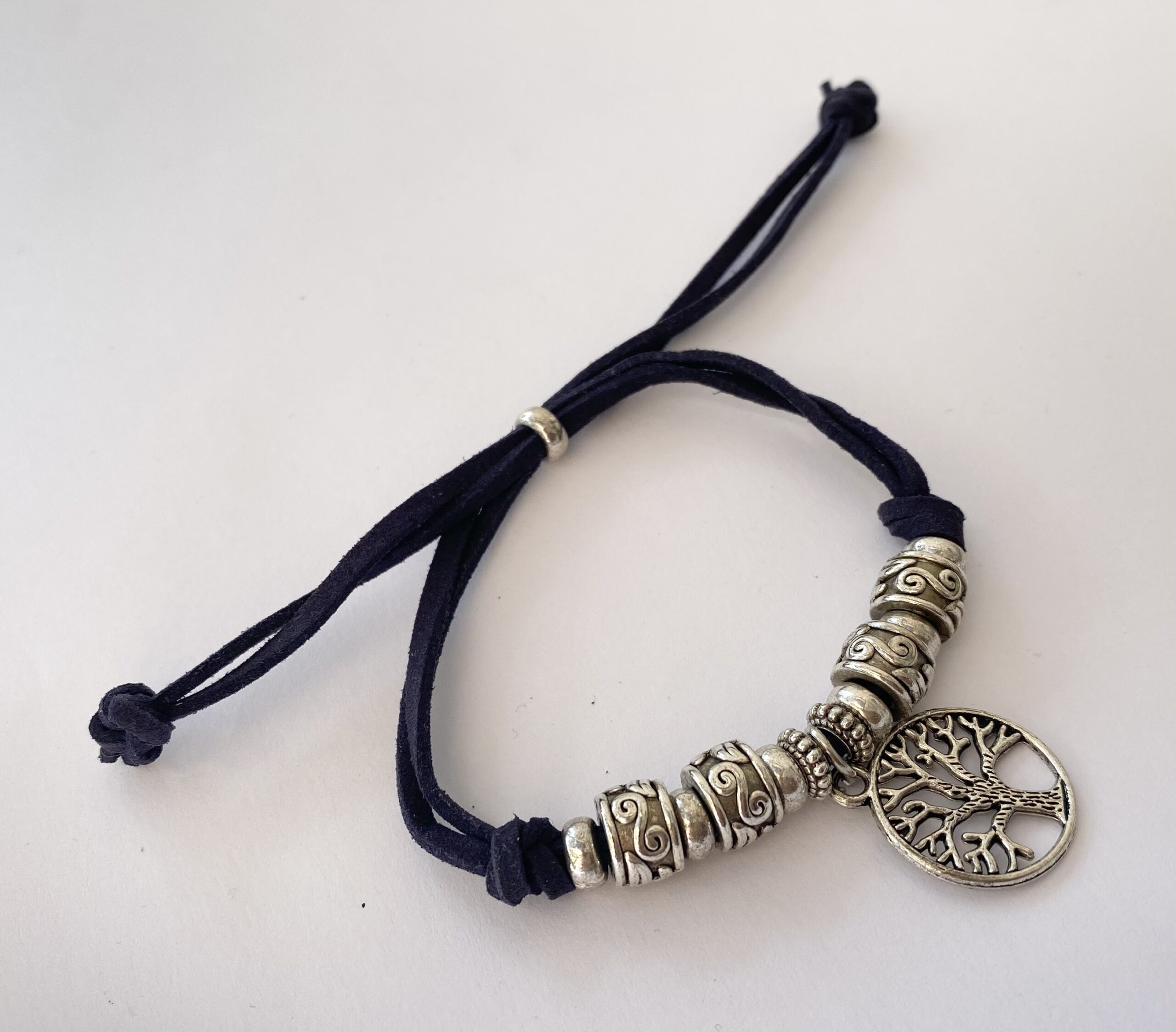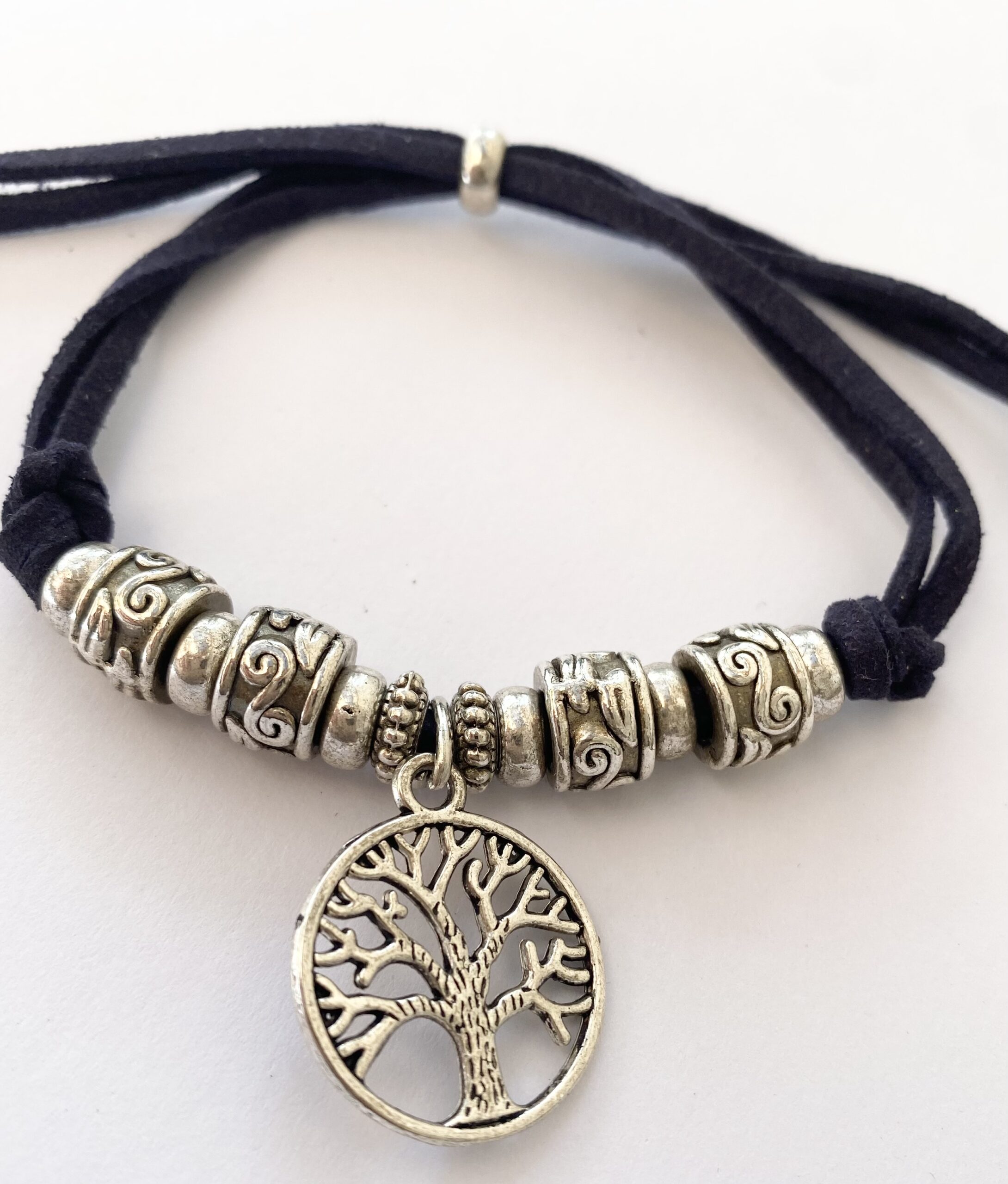 Bracelet – Tree of Life Pendant, Silver Colour, on Black Cord (adjustable) Dimensions: Adjustable Weight: 13.9g Condition: Good