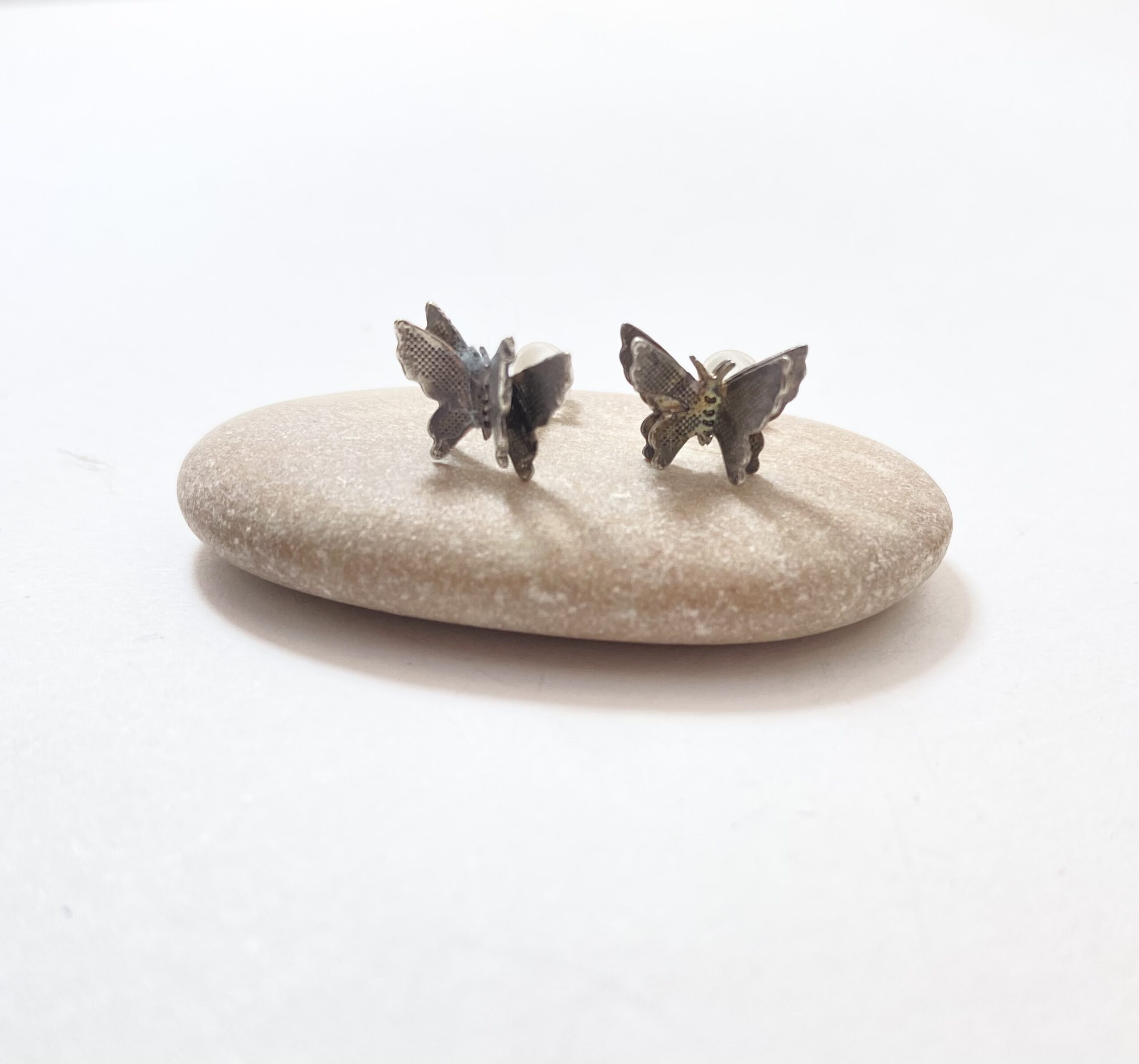 Earrings – Butterfly Shaped Studs. Silver Colour Dimensions: 8mm x 10mm Condition: Good