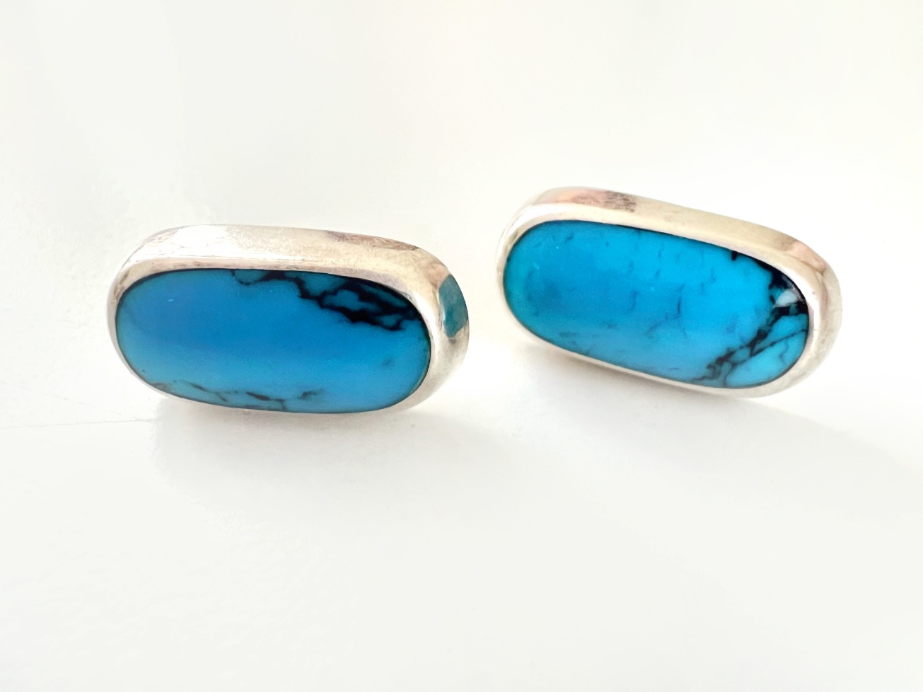 ML2030 Earrings – Vintage Mexican Silver Earrings For Pierced Ears. Turquoise Stone