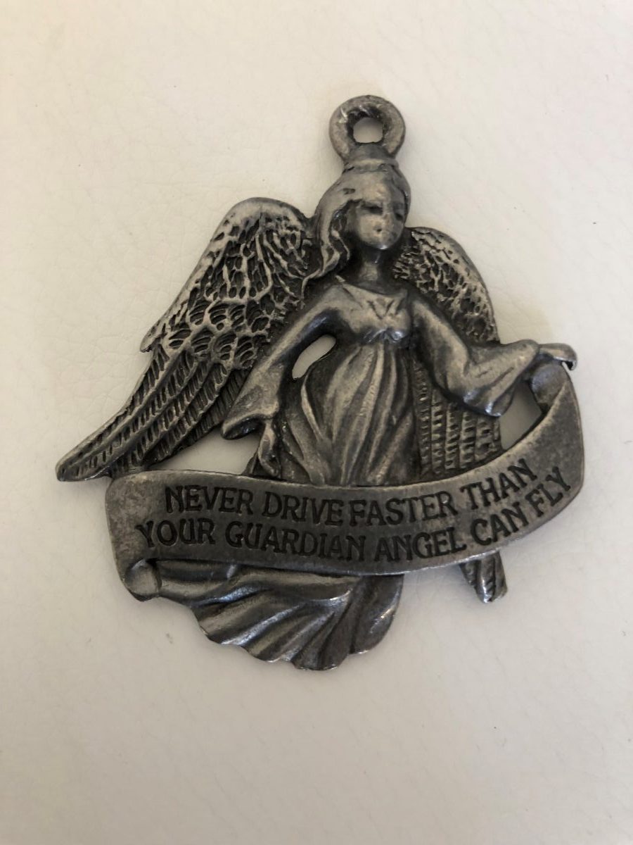 Keyring – Cathedral Art Keyring (Made in the USA), Silver Colour Wording “Never drive faster than your guardian angel can fly” Made in the USA Condition: Good