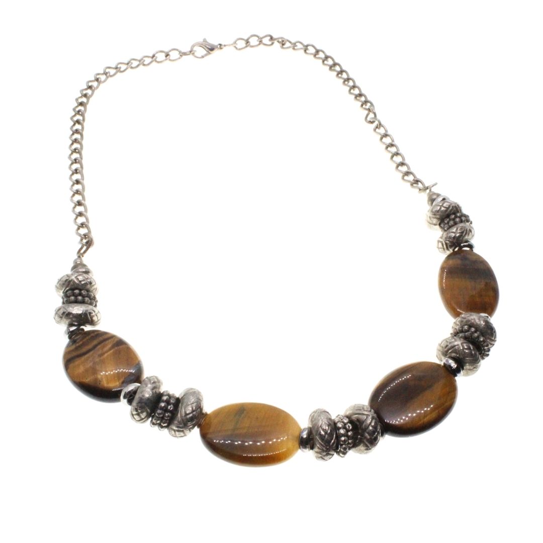 Necklace – Silver Tone Chain Vintage. Tigers Eye Stones with Silver Metal Beads – ML3303