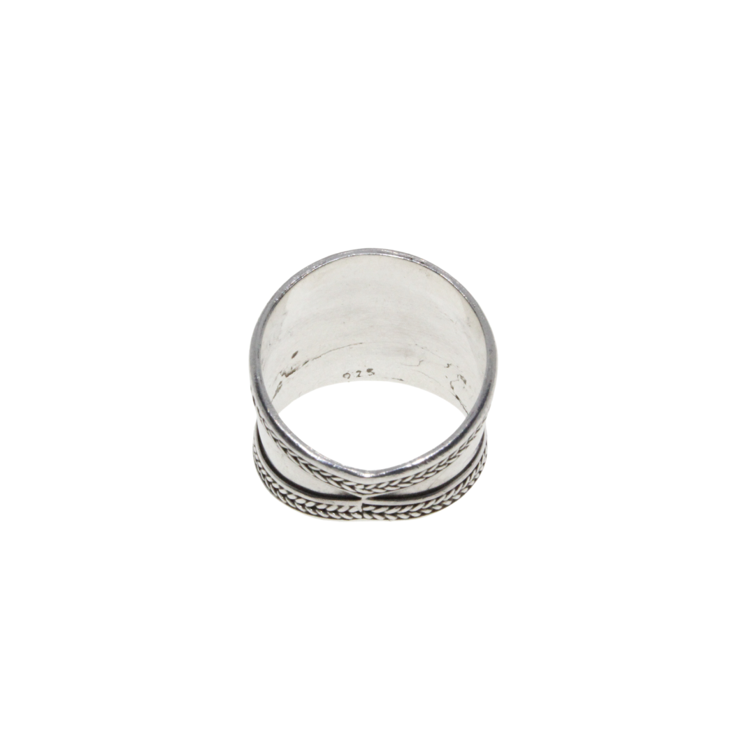 Ring – 925 Silver Wide Ring. Centre Garnet with thin rope detail – ML2817