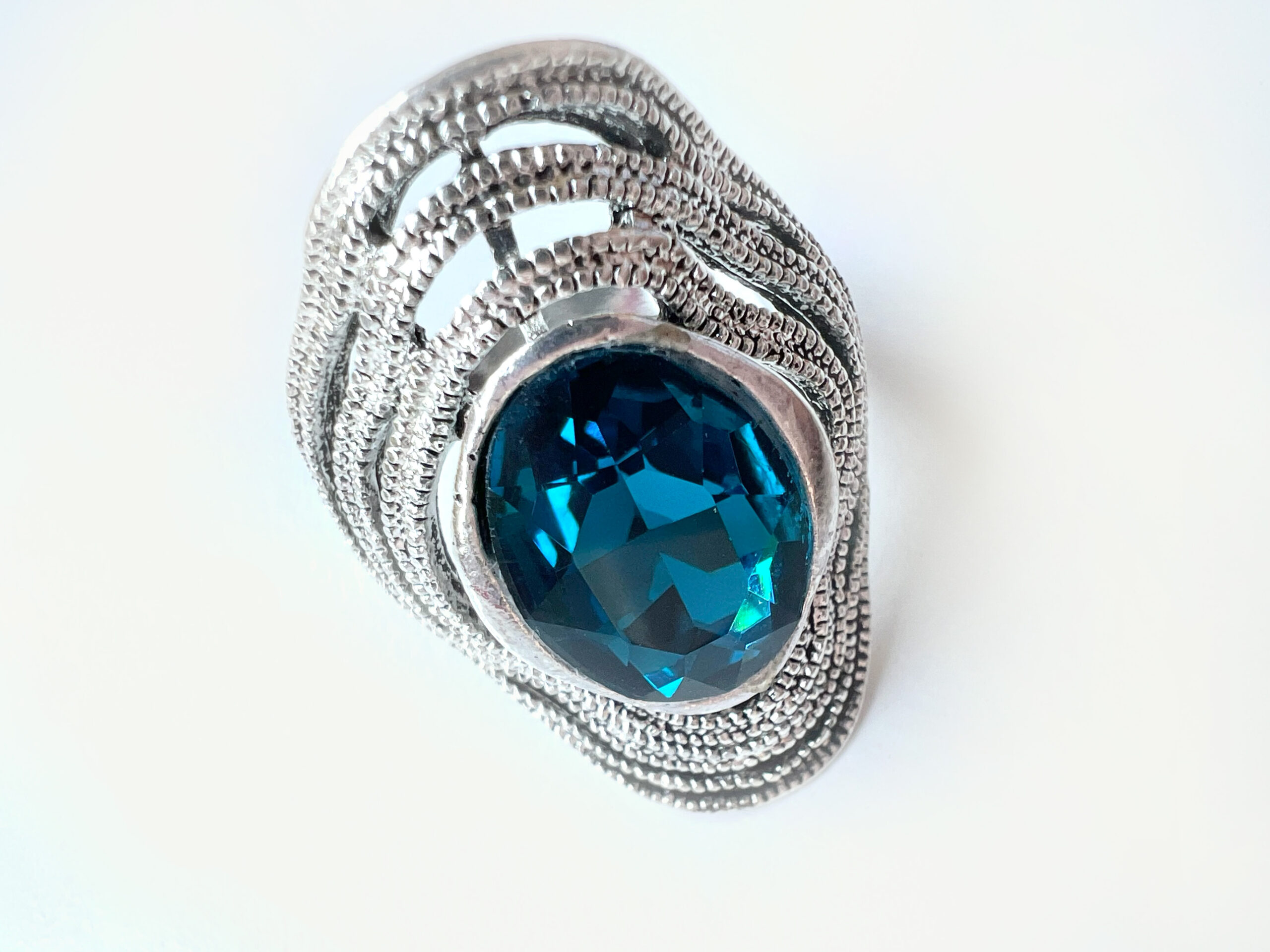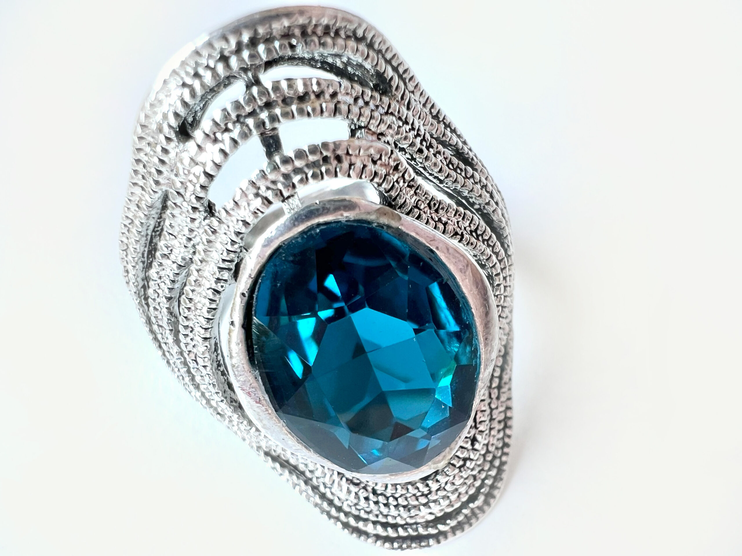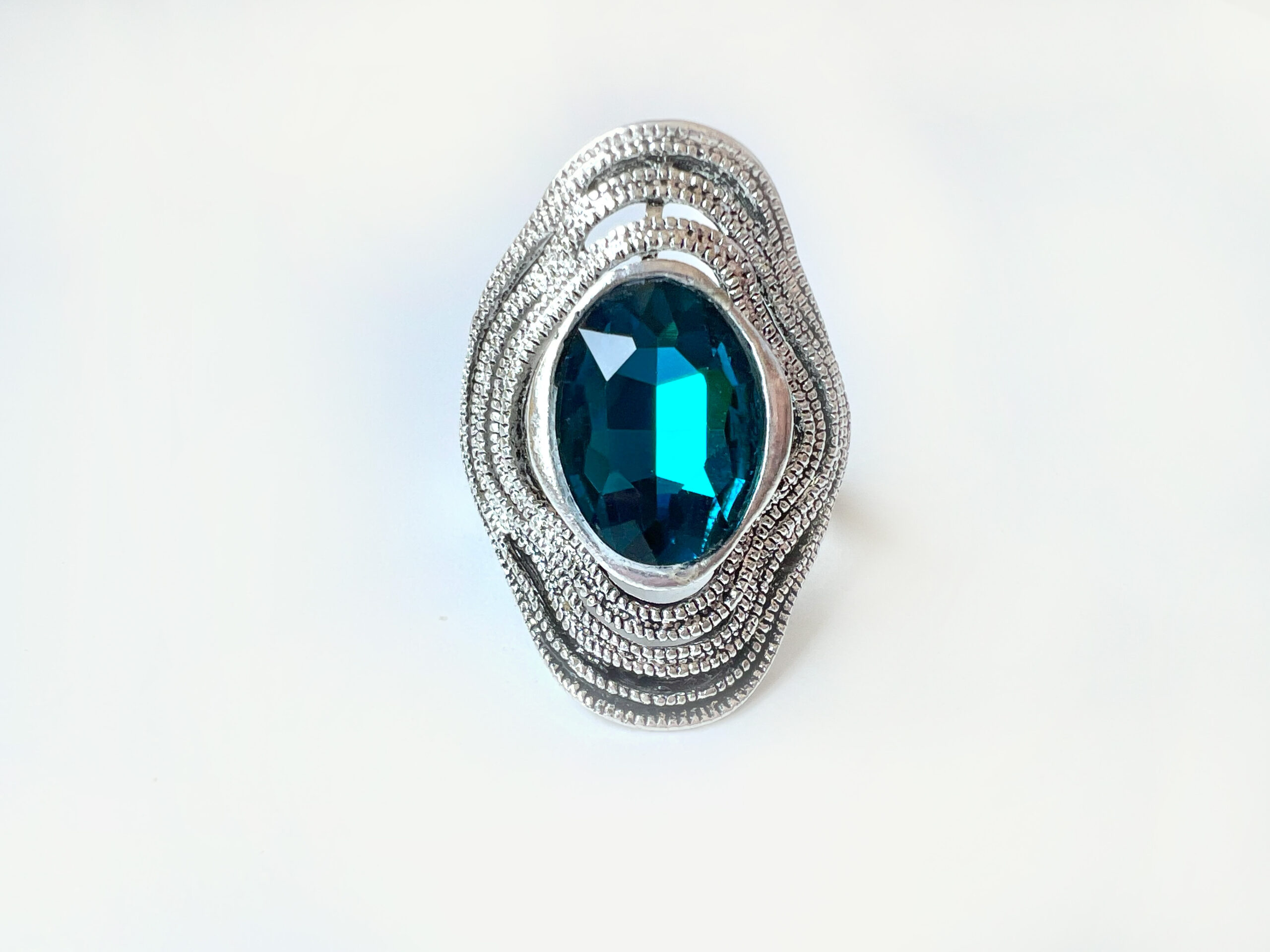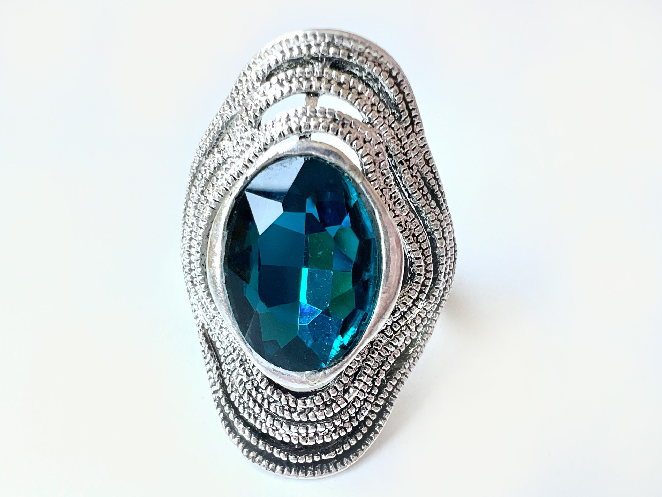 ML1936 Ring – Silver Tone Blue Glass Stone in Centre