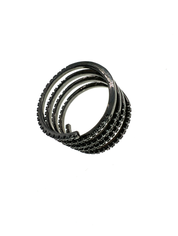 Ring – Vintage Dark Metal Tone Spiral Ring with Diamantes – ML2236